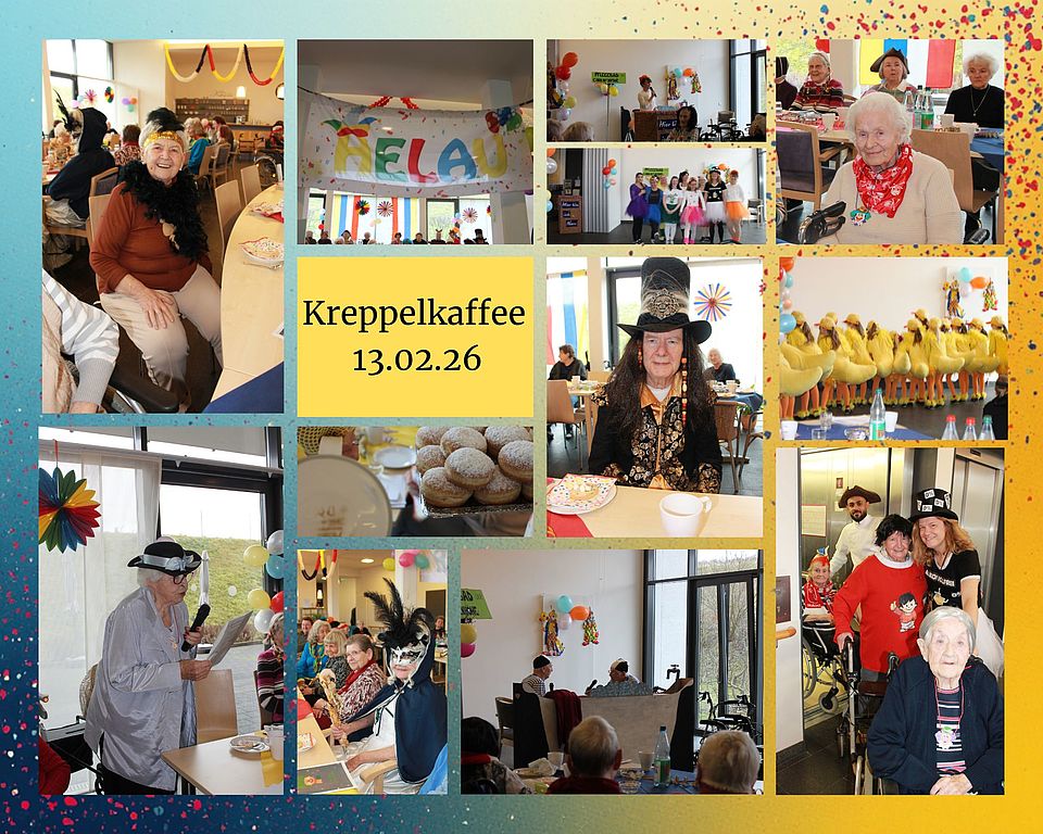 Am 13. Februar 2026 feierten wir in unserer Seniorenresidenz einen rundum gelungenen Krebbelkaffee mit bester Fastnachtsstimmung. Die Leitung der sozialen Betreuung eröffnete das Programm mit einem vorausschauenden Protokoll auf das bunte Programm. Anschließend brachten unsere Mitarbeiterinnen als „tanzende Cocktails“ mit einer schwungvollen Darbietung den Saal zum Beben.
