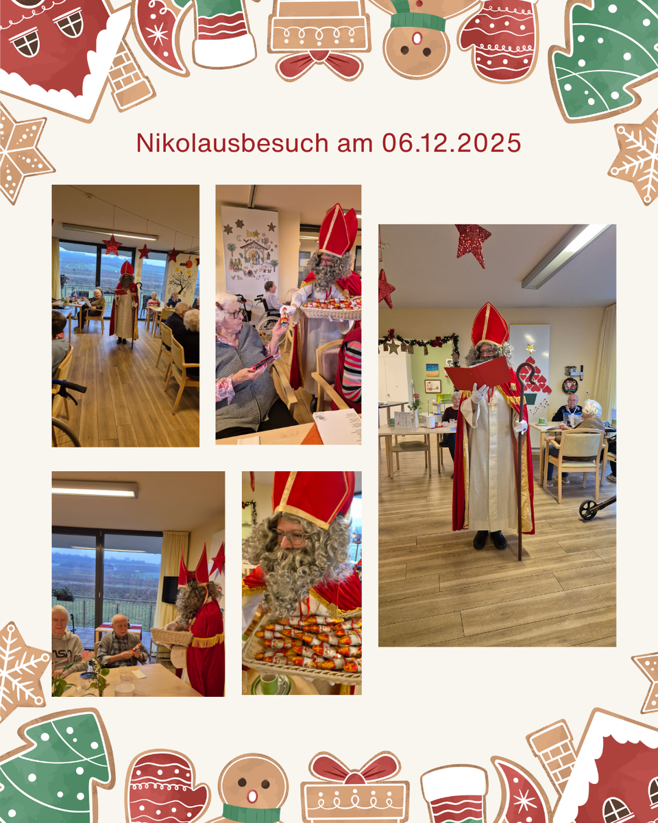 Der Nikolaus hat unsere Bewohner besucht und für viele strahlende Gesichter gesorgt. Mit liebevollen Worten und einem Schokoladennikolaus für jeden brachte er weihnachtliche Freude in unser Haus.
