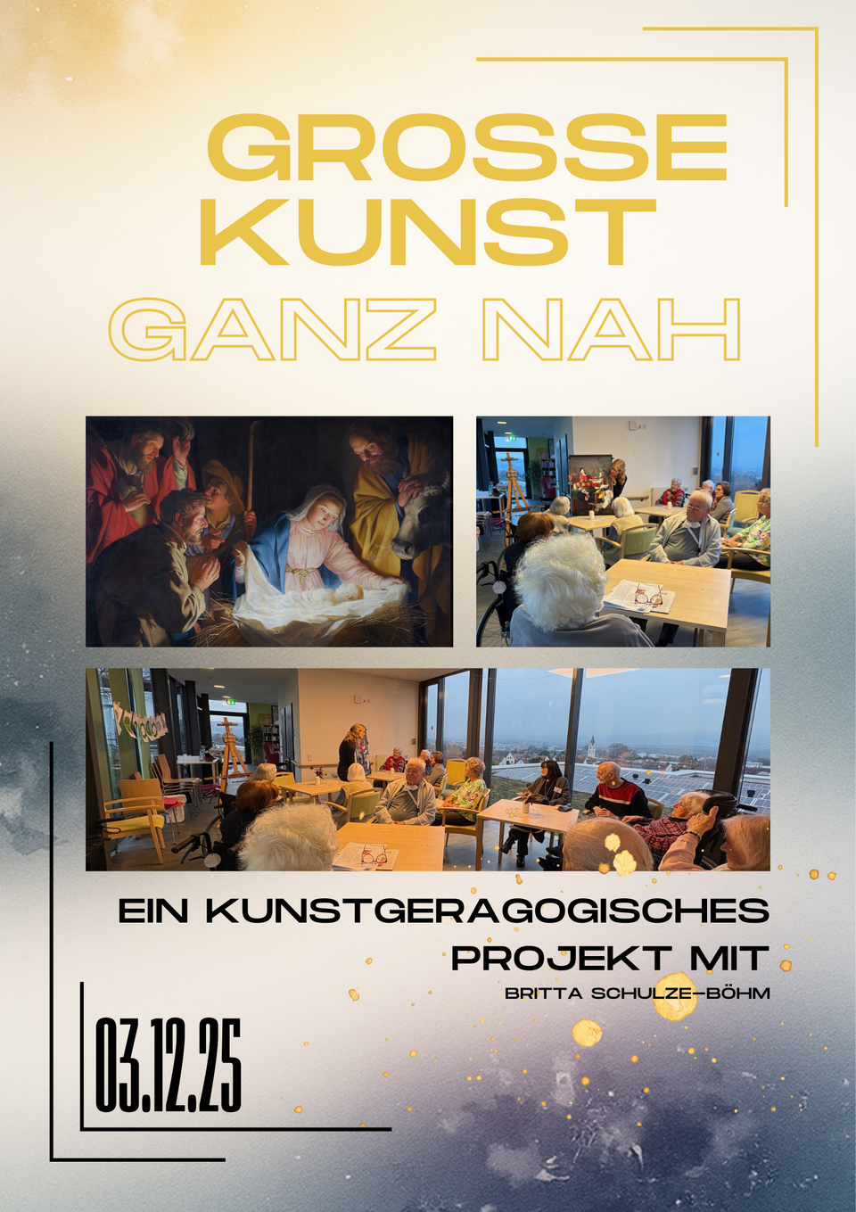 In einem kunstgeragogischen Projekt tauschten sich unsere Bewohner über die Farben, Geschichten und Erinnerungen aus. Gemeinsam wurde über Kunst, Künstler und die Bedeutung der Zeichnungen gesprochen. Frau Schulze-Böhm brachte unseren Bewohner dafür u.a. eine Darstellung der Anbetung des Hirten mit.